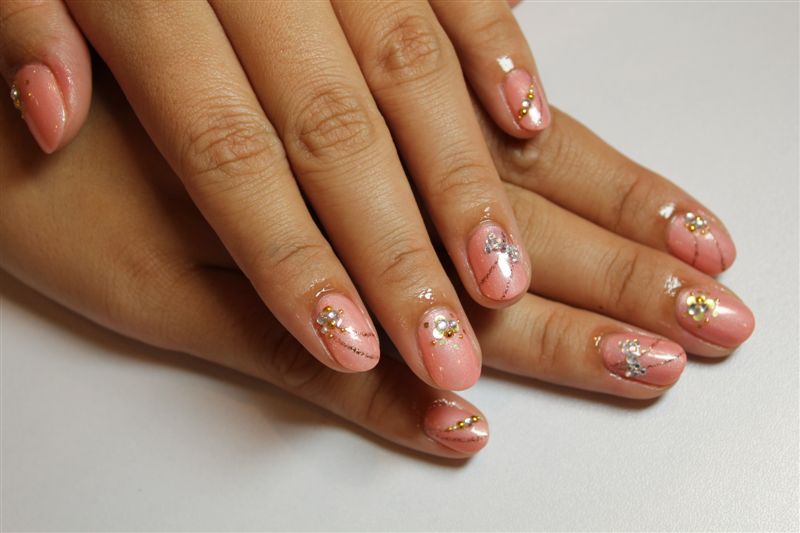 私が担当したのですが。。。クリアベースにブロンズラメのグラデーションでした。