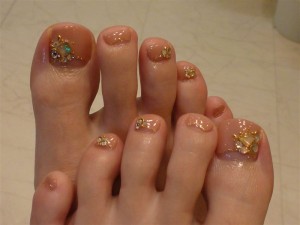 私の足は6月末頃にみゆきちゃんにやってもらった小花柄ジェルネイルが親指だけ残ったまま・・・。
