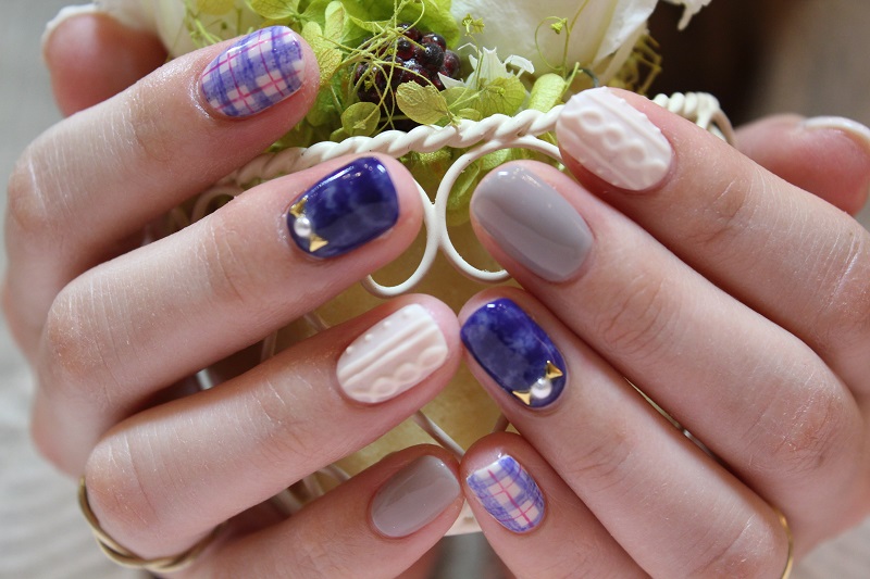 どうしてもニットネイルをしてみたかったということで左右2ほんずつ入れました。