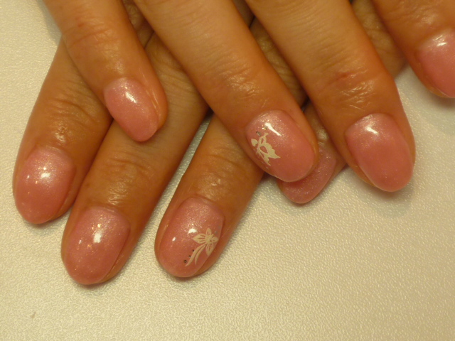 デザインは見本を持ち込みされ、ピンクベージュにレースでブライダルにピッタリなデザインでした。