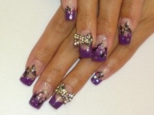 左は明日が結婚式のH様のスカルプ。ブルーとパープルのラメスカルプでチョットゴージャスネイル。